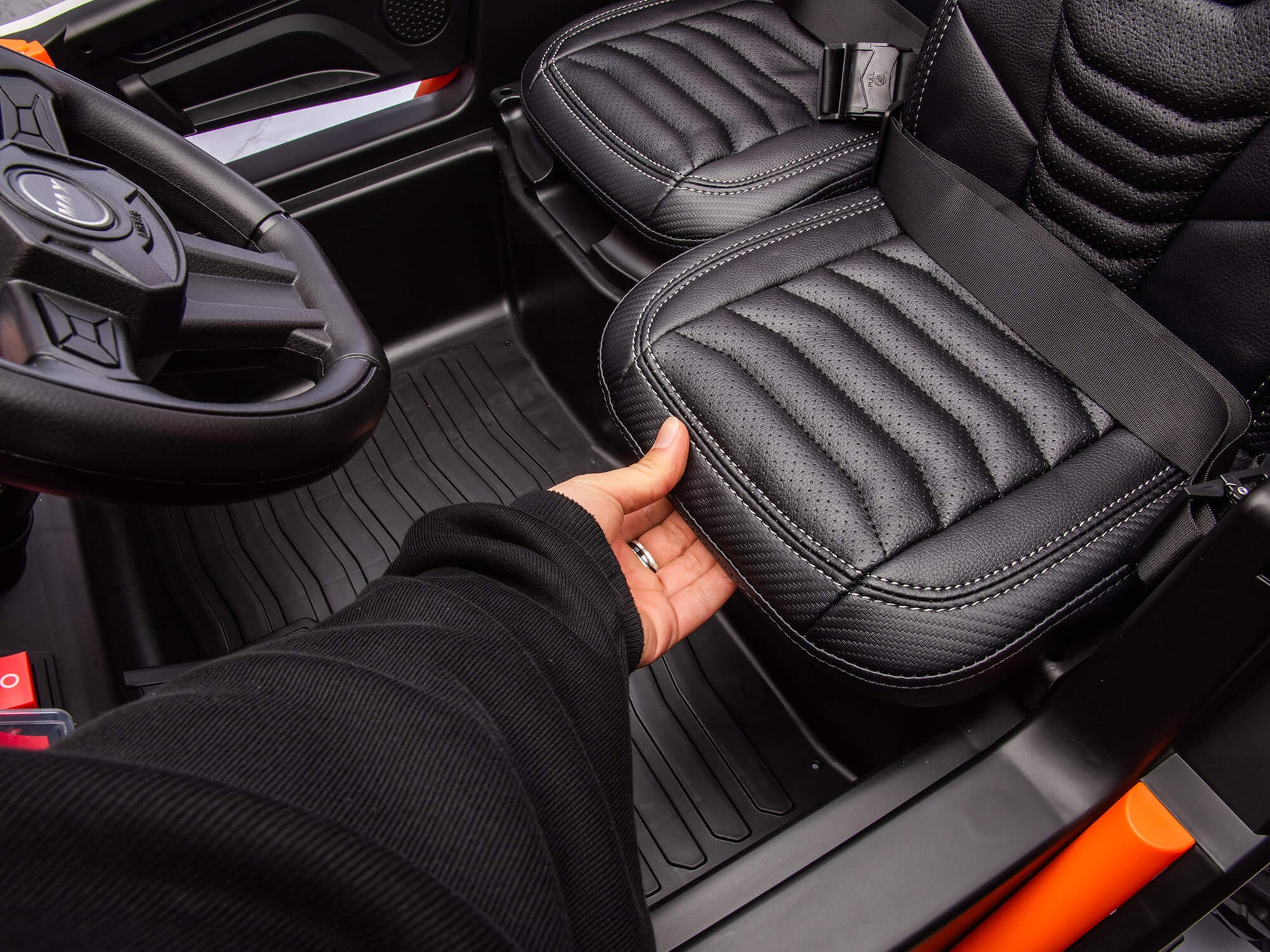 - Adjustable Leather Seats and Seat Belts for Two