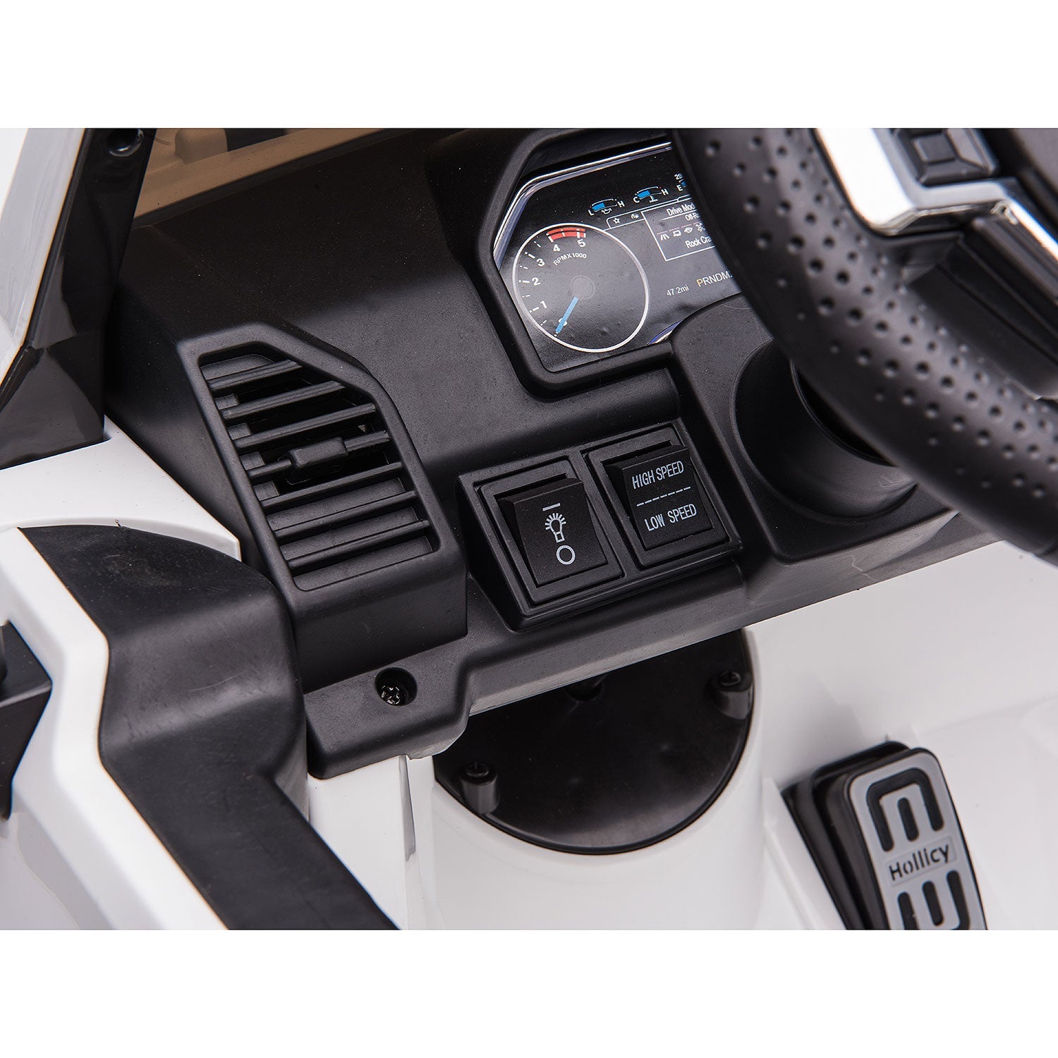 • Removable Large Capacity 24V Power Battery with Overload Protection, 2 Powerful Custom 775 Motors, 2 Forward Speeds (3 Speeds on Parental Remote), 1 Reverse Speed, Maximum Speed 3-6 Mph