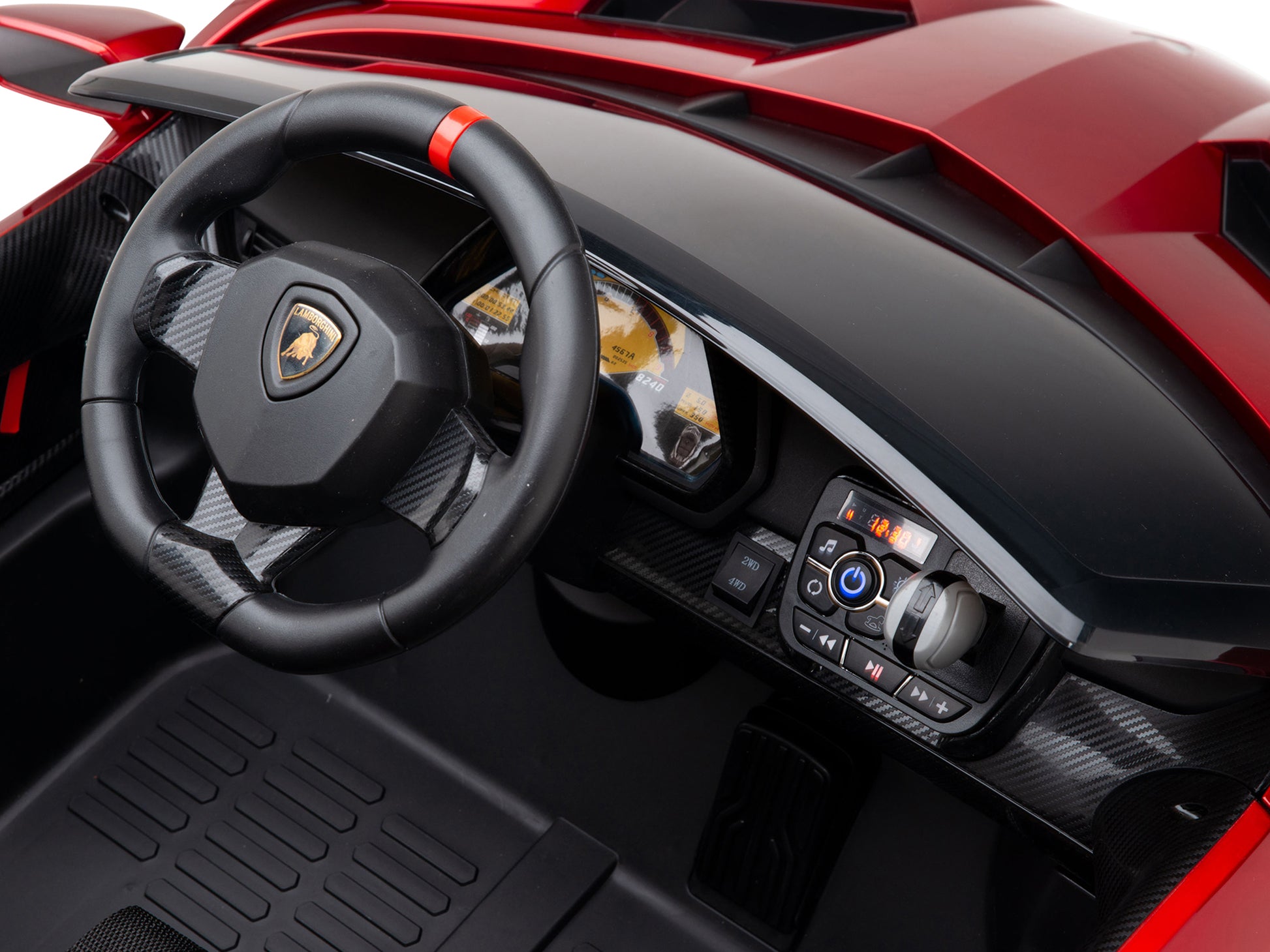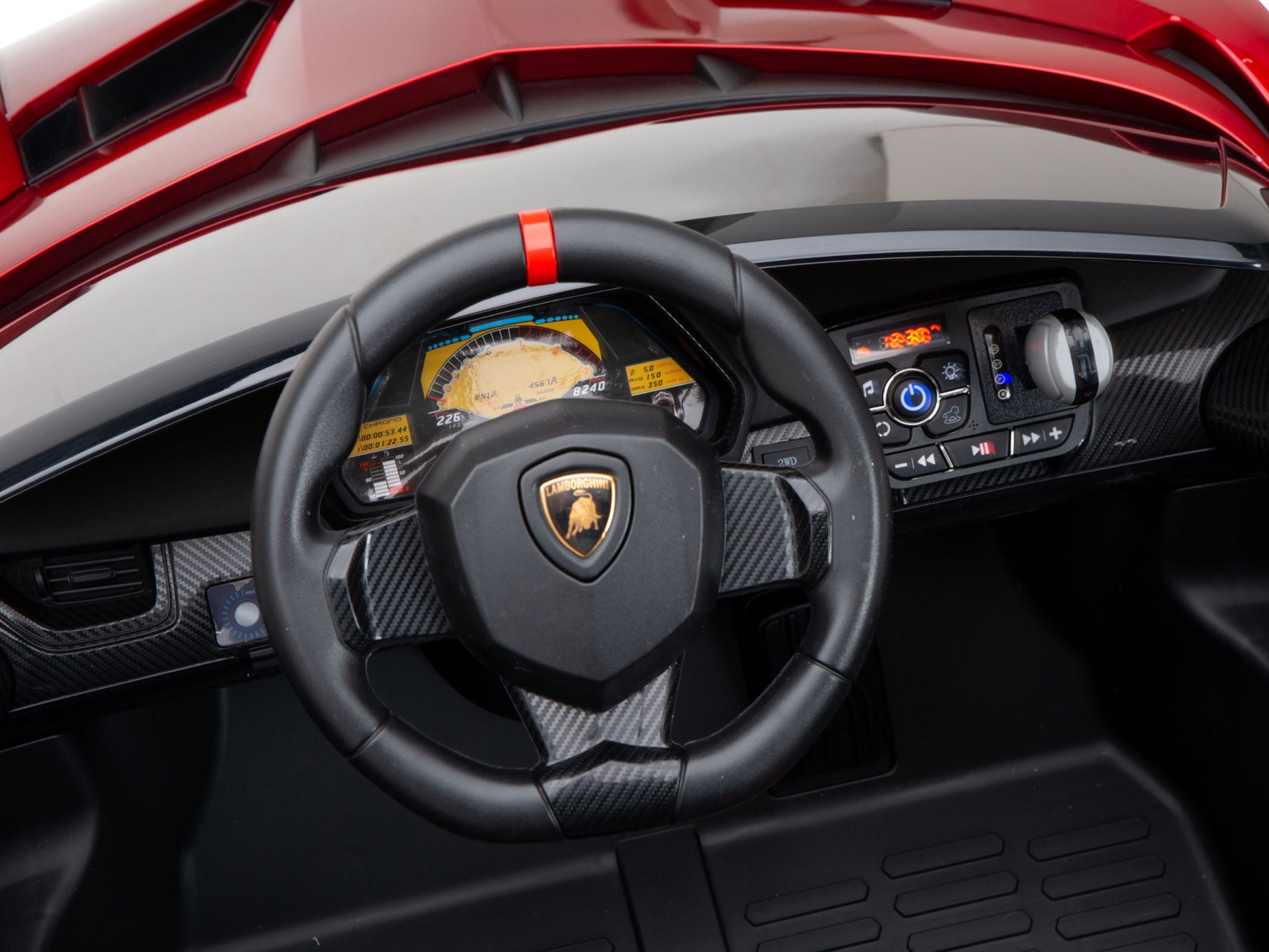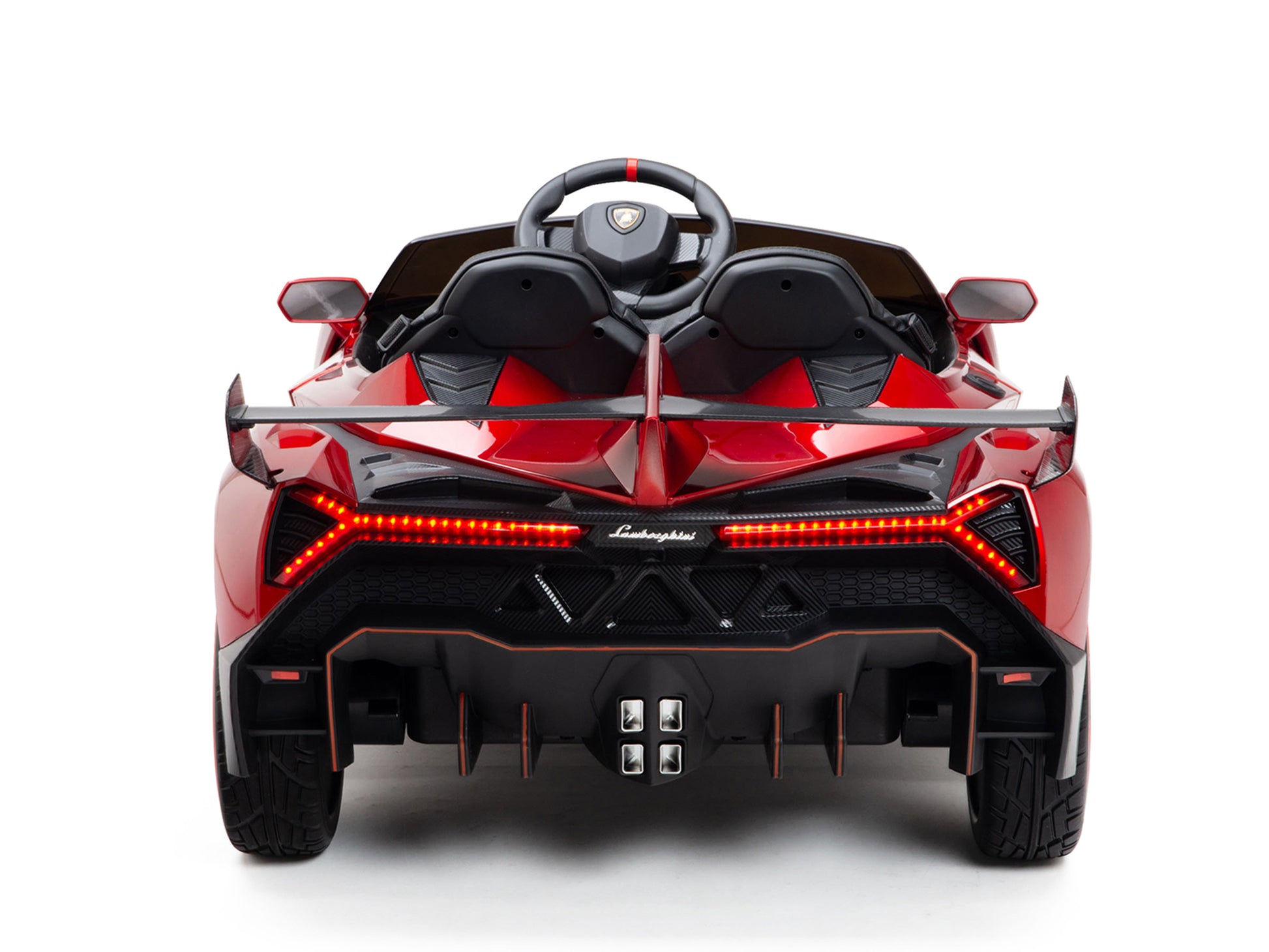 Now available in 2WD and All-Wheel-Drive versions, this 2-Seater Lamborghini Veneno is quite different from the budget look-alikes offered on most sites. For starters, all of the Venenos that we stock are painted which adds a beautiful look to the finish of these ride-on cars for kids. These have also been factory-upgraded with a leather seat and EVA wheels. And for the closest replica of the real thing, there is an All-Wheel-Drive option which comes with 4 gearboxes and an extra-capacity battery pack. The multimedia module with Bluetooth is great for playing your favorite tunes through the built-in speaker. This supercar can be operated by a 2 to 5 year old driver via the steering wheel and foot “gas pedal” and also comes with a 2.4GHz remote which allows a parent to steer or take over its operation. In addition to “4-way” steering, the remote also controls its 3 speeds and has a “parking/stop” function. Assembly is simple and we recommend that you do it yourself (45-60 minutes) so as to become familiar with its operation and controls.